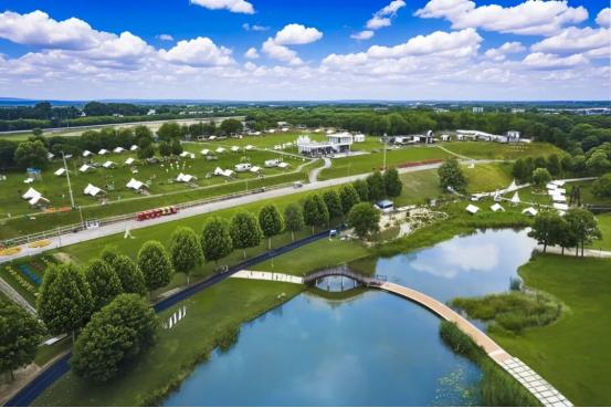 度假区占地8150亩,项目内穿过一条自然河流-枯河,也称旃然河,最终汇入黄河。枯河贯穿项目东西,将度假区分为南北两侧,南岸区域规划建设为文旅、商业片区,整体占地1329.15亩,建筑面积8.8万平米,涵盖江南春温泉、四星级酒店、夜澜星舍民宿、红合院民宿、院子里房车民宿、自然乐园、水上俱乐部、越野俱乐部;采莲轩商务餐厅、懒蛙蛙亲子餐厅、夜伴烤吧餐厅、东篱农庄餐厅、时光老餐厅、福福西餐厅;山湖里商业综合体、野奢营地、小莓好运动农场、中原影视城等文旅及商业板块。北岸区域规划建设为忆江南康养住宅区、小莓好运动农场、中原影视城及追风山谷为主的运动型野奢度假片区。