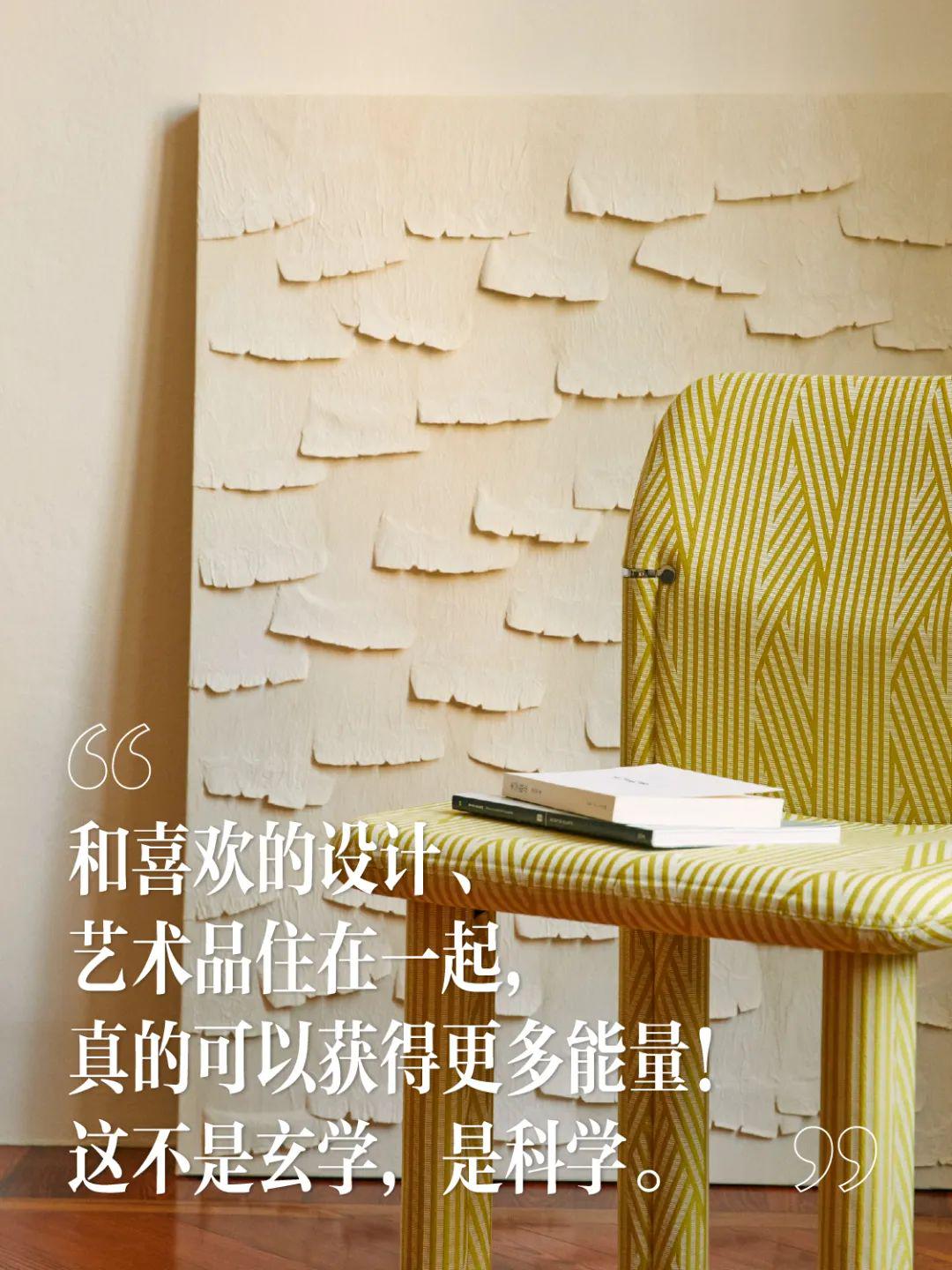 “我很喜欢的爱尔兰女性建筑师Eileen Gray曾说过:家,是一个人精神的流动与延续。我对家的幻想是一个可以承载我精神与梦想的空间。与喜欢的设计生活在一起,对我来说,能量是巨大的。”